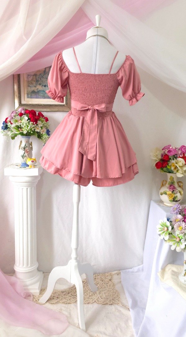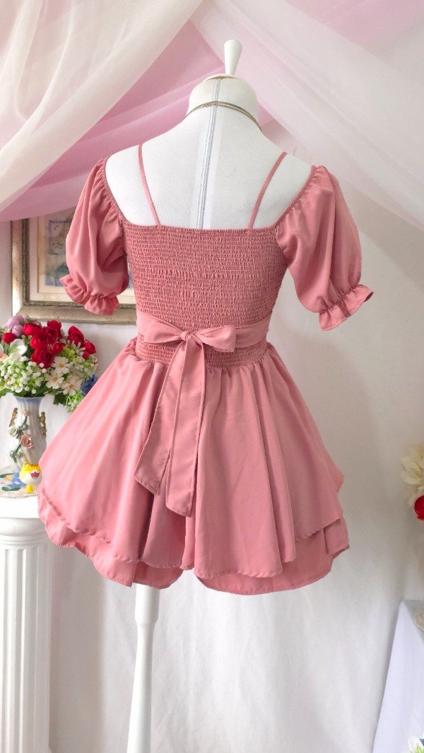 Espalda con frunce elastico lo cual hace que sea super comodo y se amolde sin ajustar, permite que sea práctico ponérselo y cómodo moverse con el!