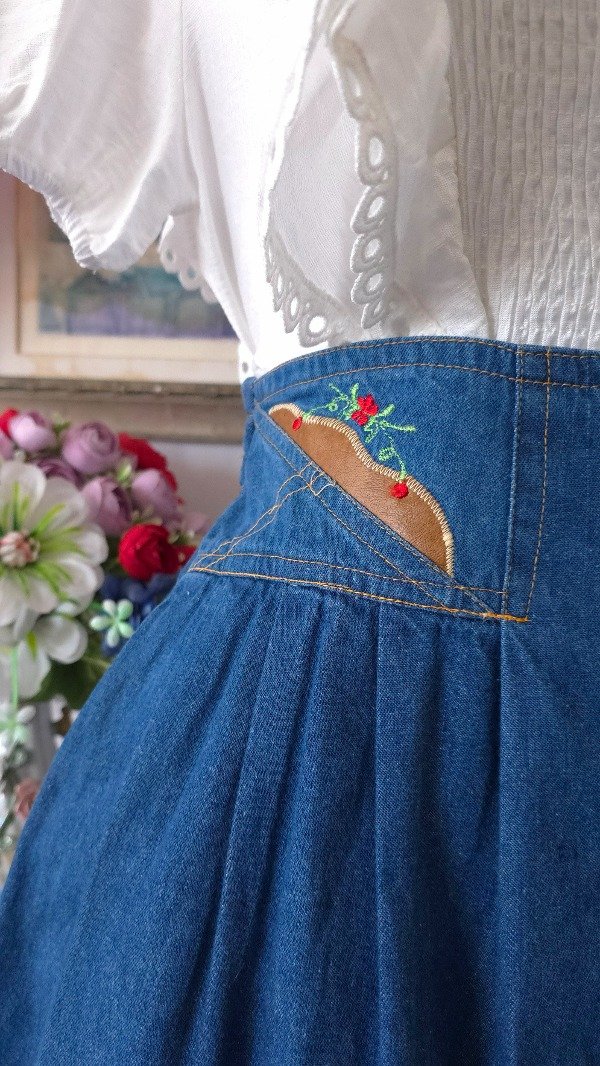 Cintura vasca, con detalles de bordados y apliques en cuero.