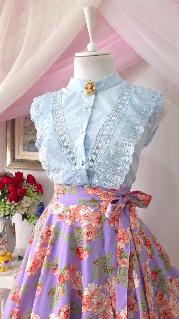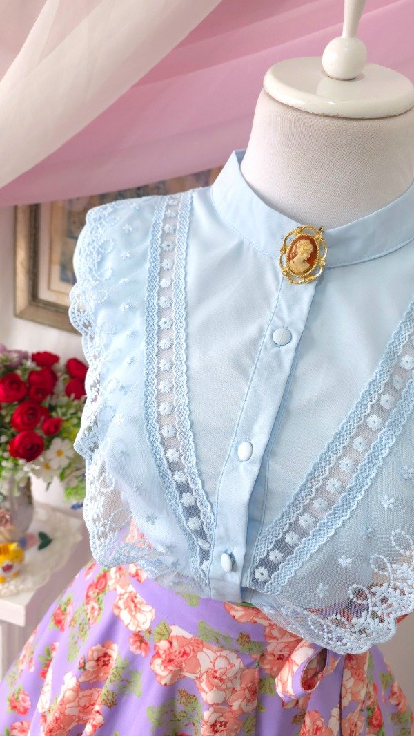 Detalles romanticos de encaje en todo el delantero y botones forrados a tono!