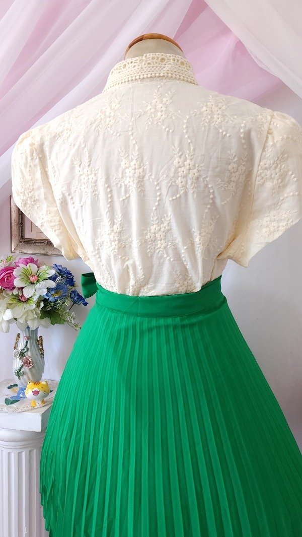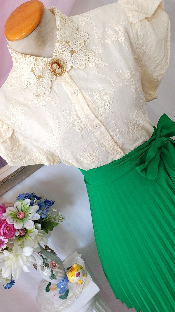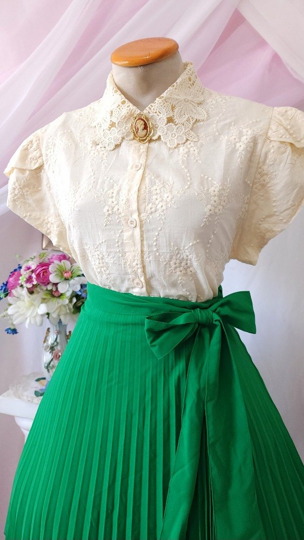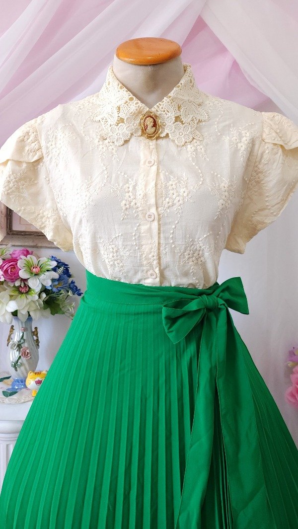 Confeccionada íntegramente en broderie de algodón con cuellito en guipiur de algodón.