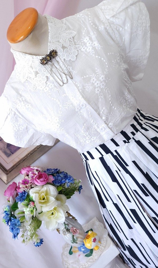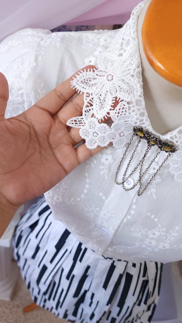 Confeccionada íntegramente en broderie de algodón con cuellito en guipiur de algodón.