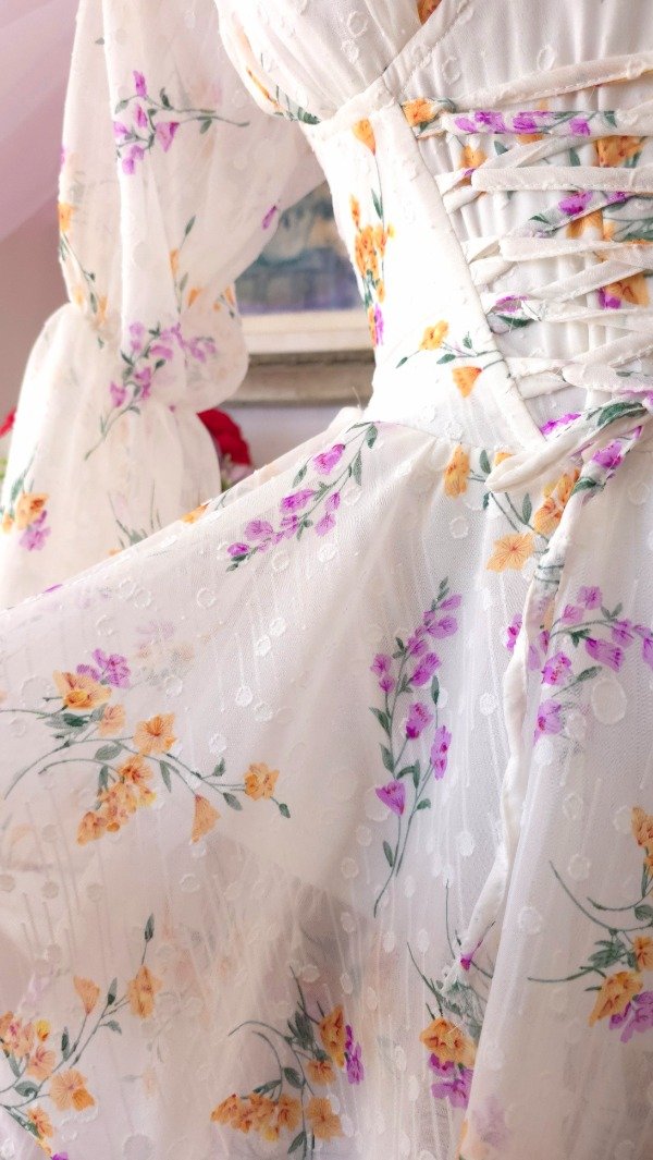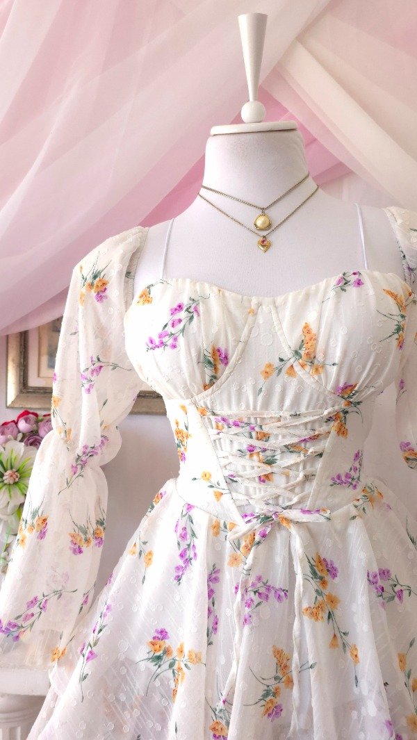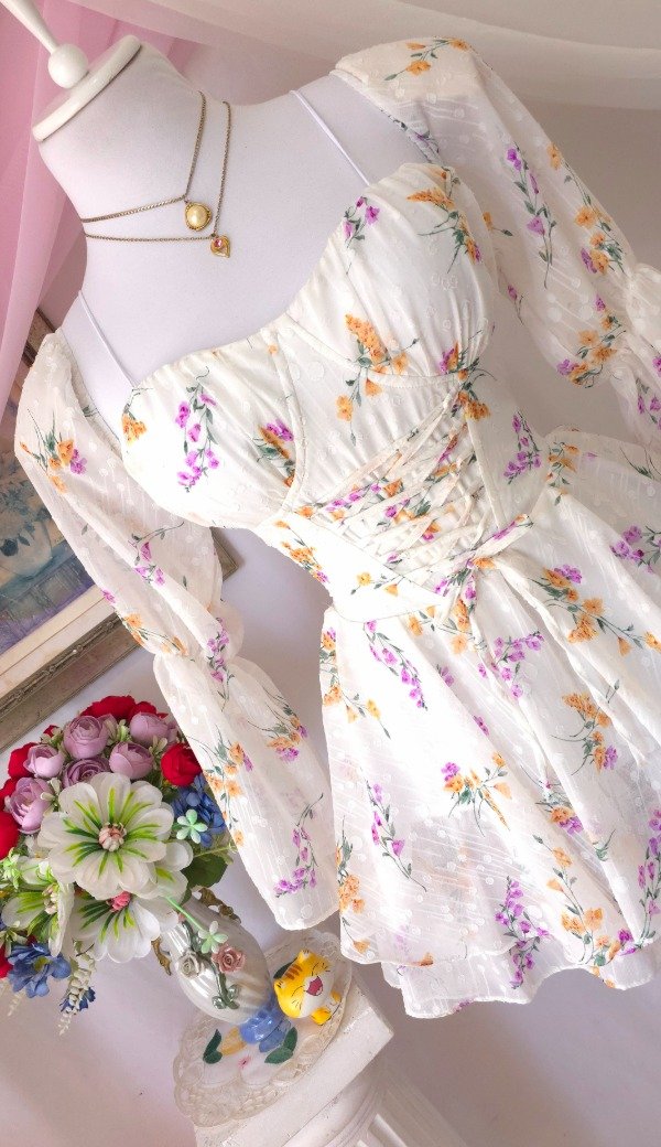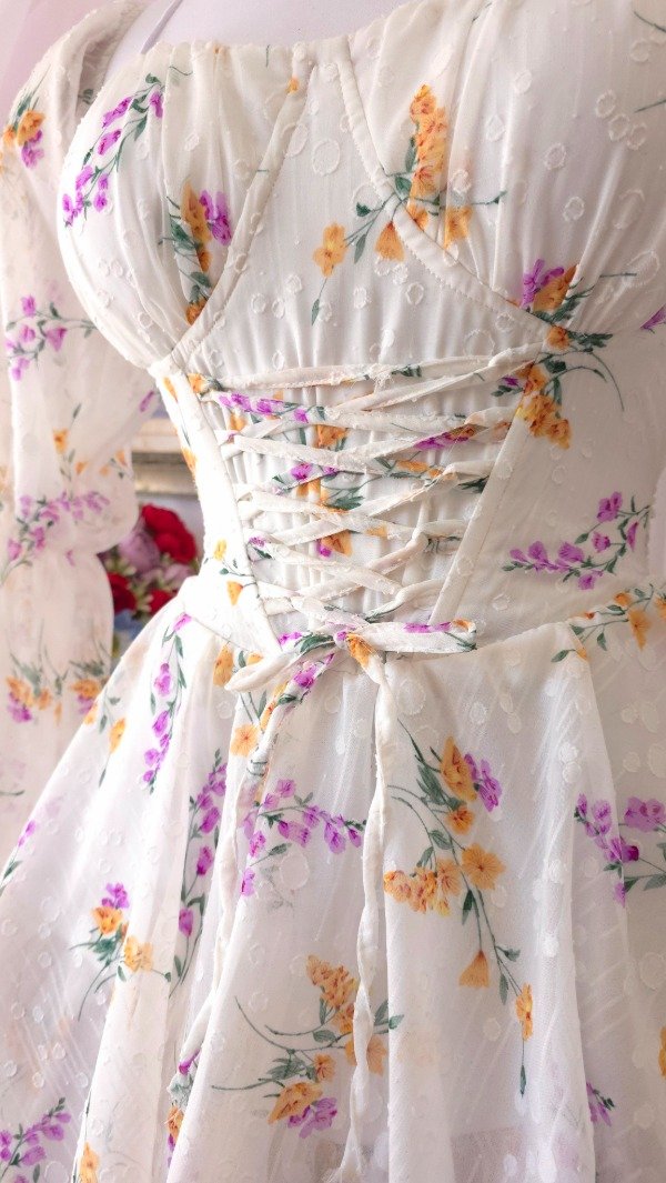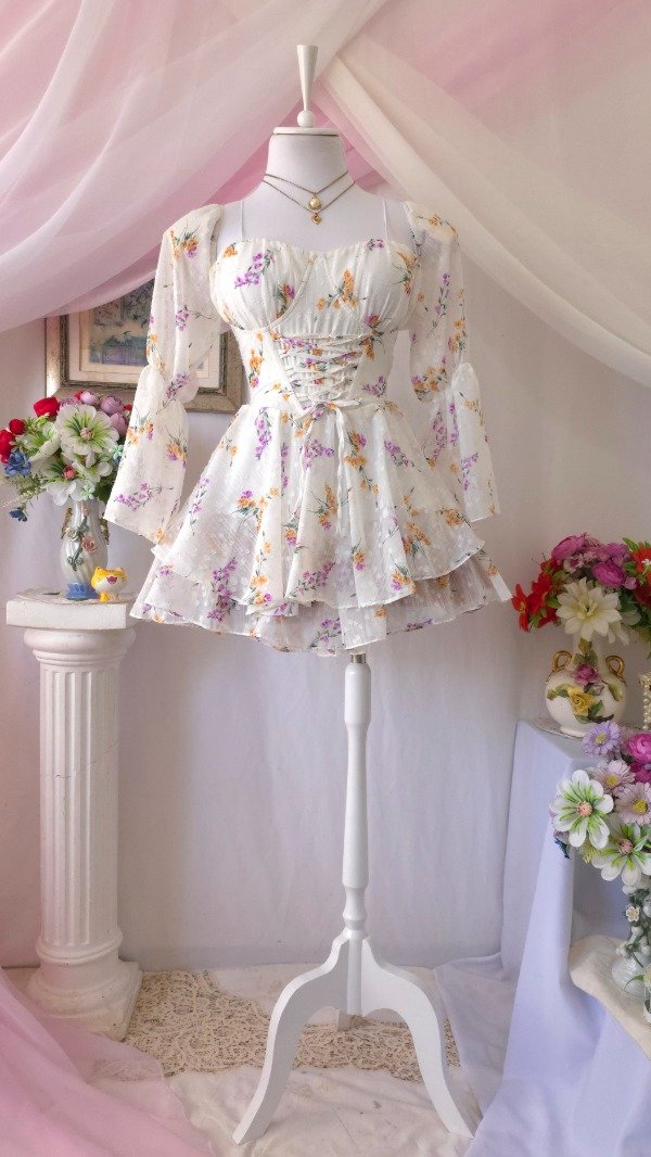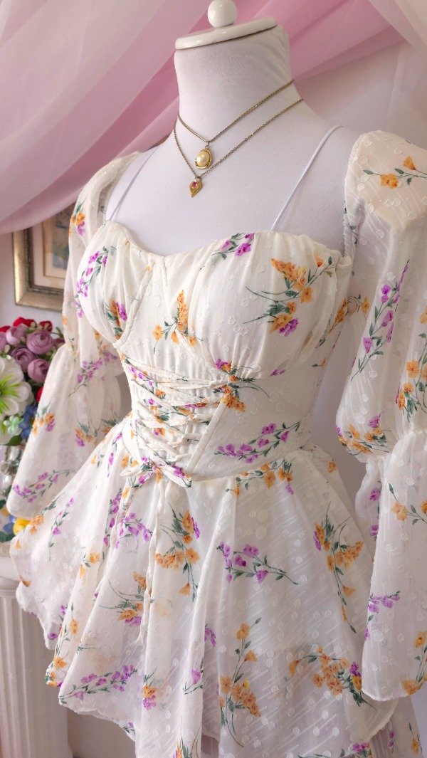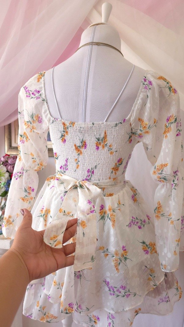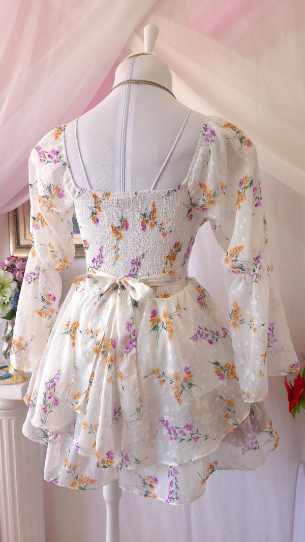 Confeccionado íntegramente en gasa de calidad premium, totalmente estampado en tonos romanticos coquette!