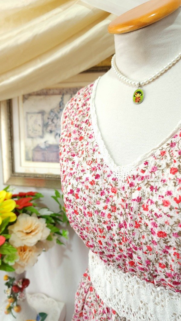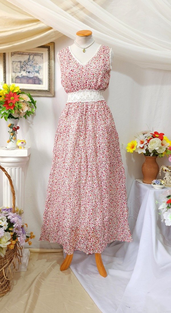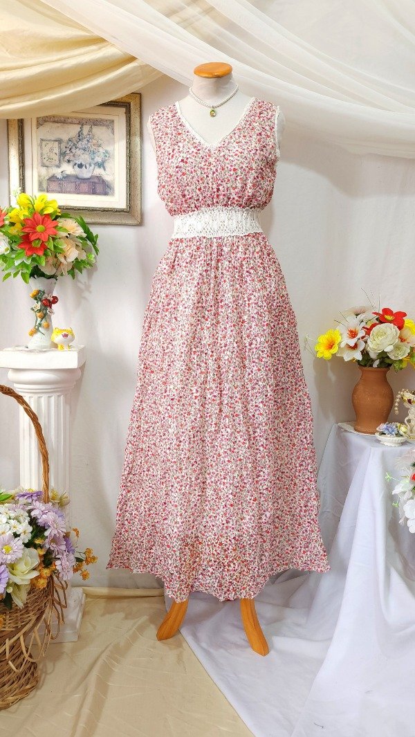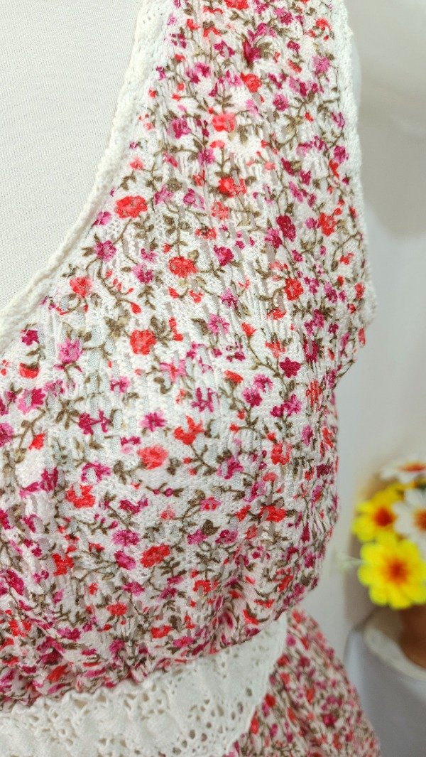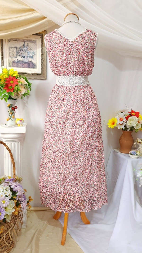 Maxivestido @Sweet confeccionado en materiales livianos. Su capa externa es de un material calado y el interior de un forro liviano.