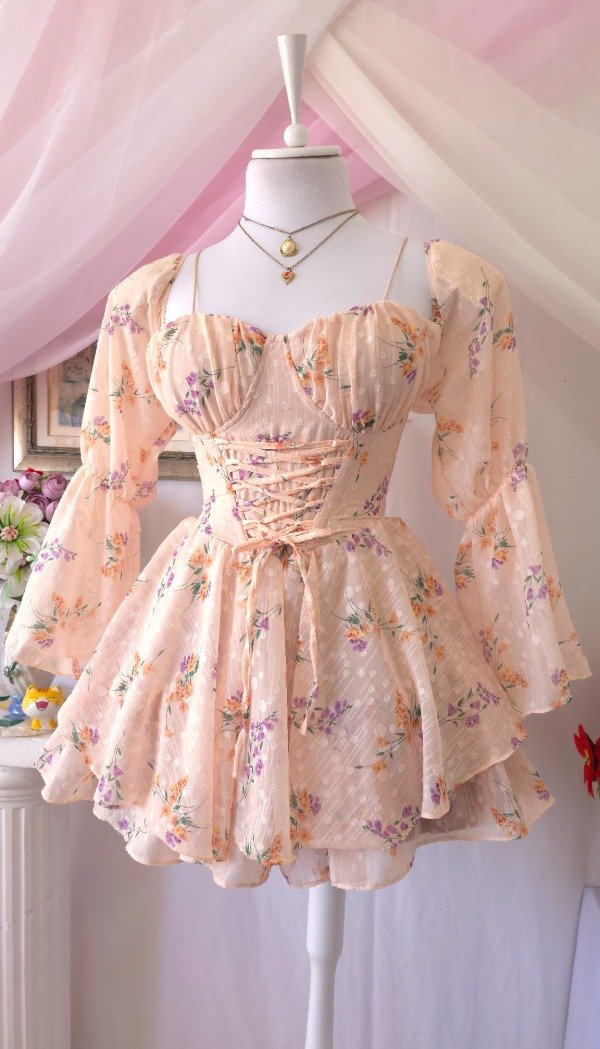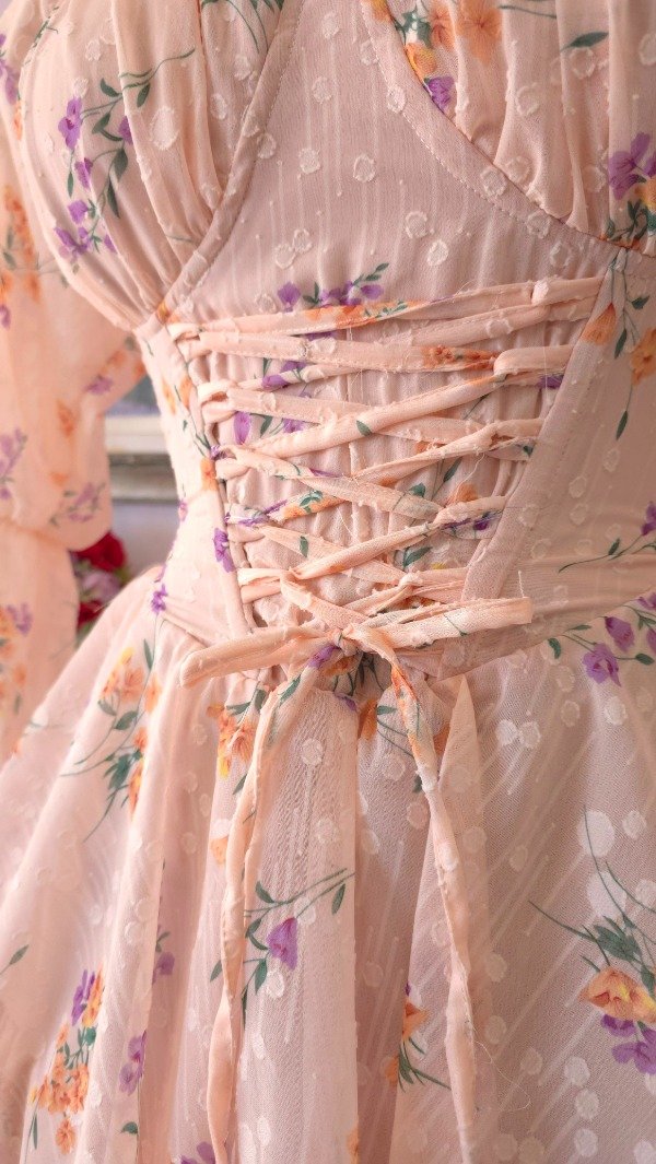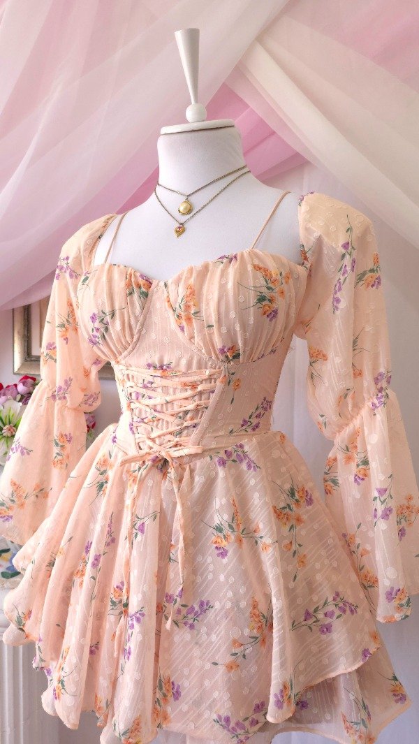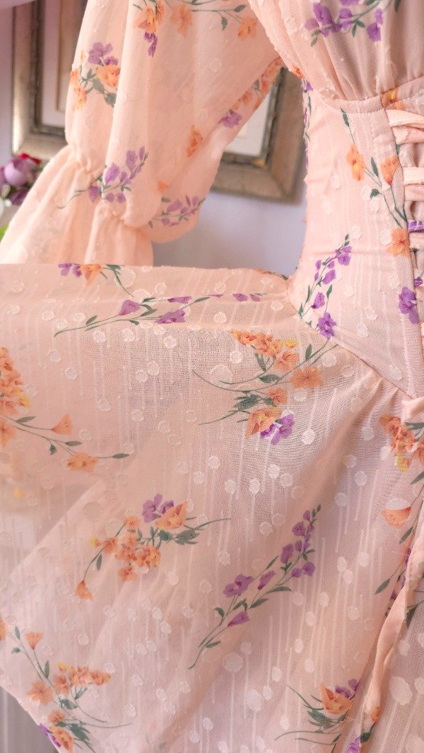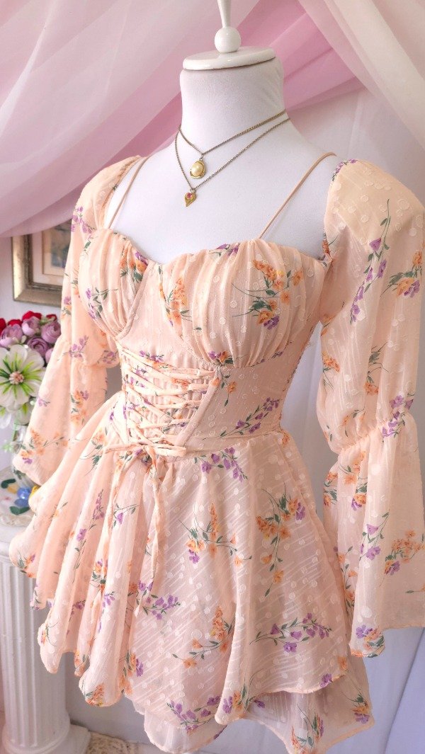 Confeccionado íntegramente en gasa de calidad premium, totalmente estampado en tonos romanticos coquette!