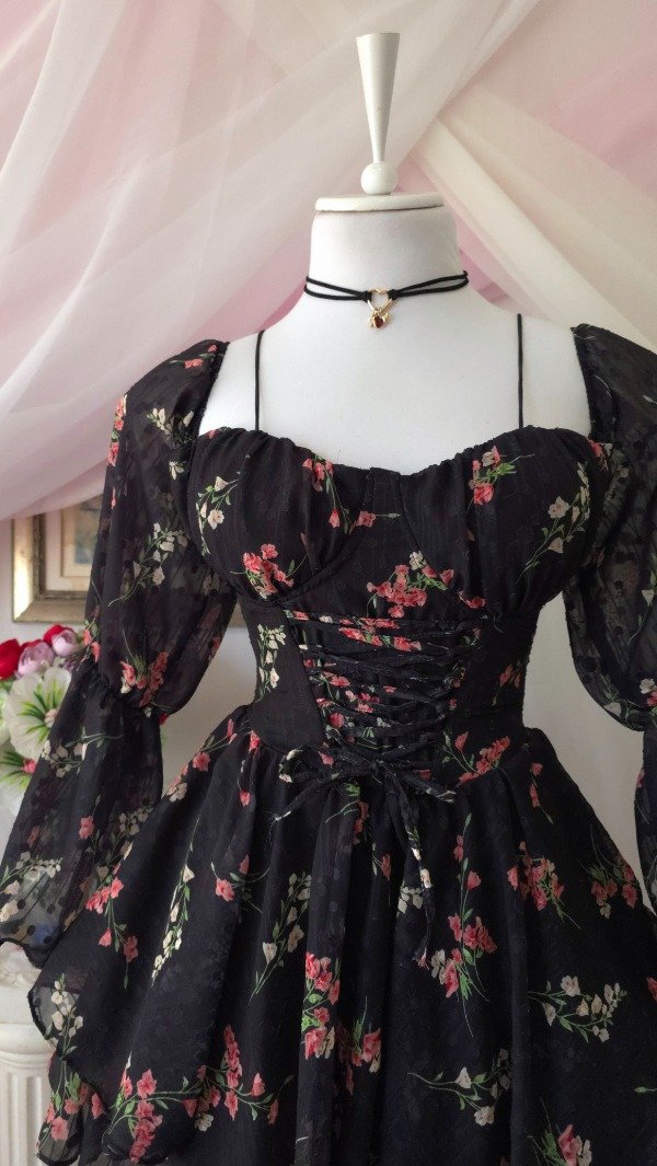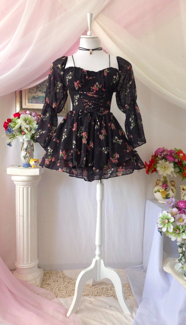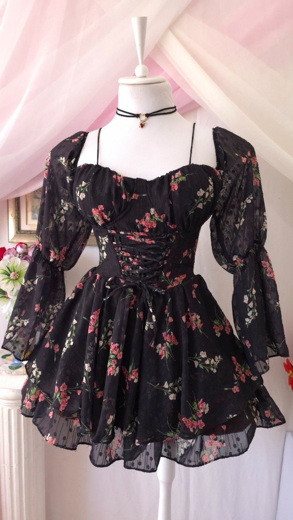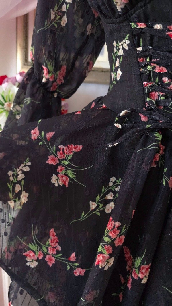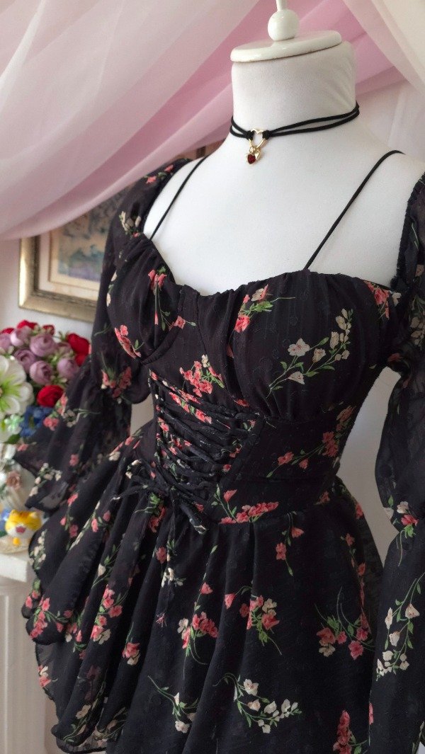 Confeccionado íntegramente en gasa de calidad premium, totalmente estampado en tonos romanticos coquette!