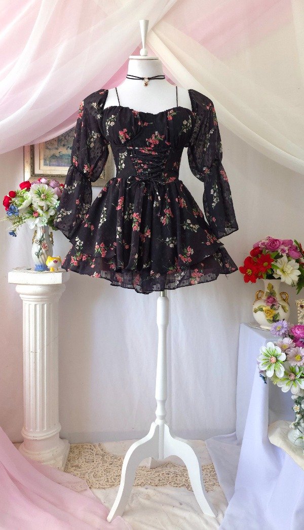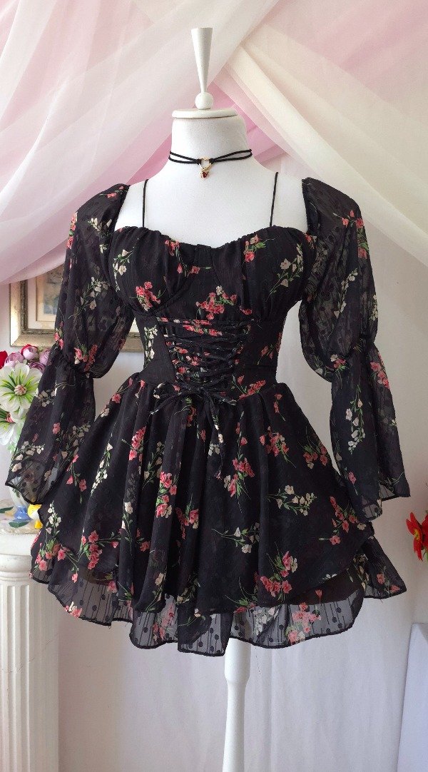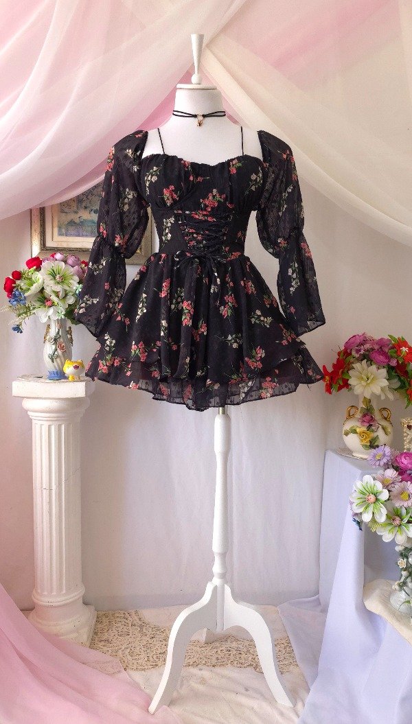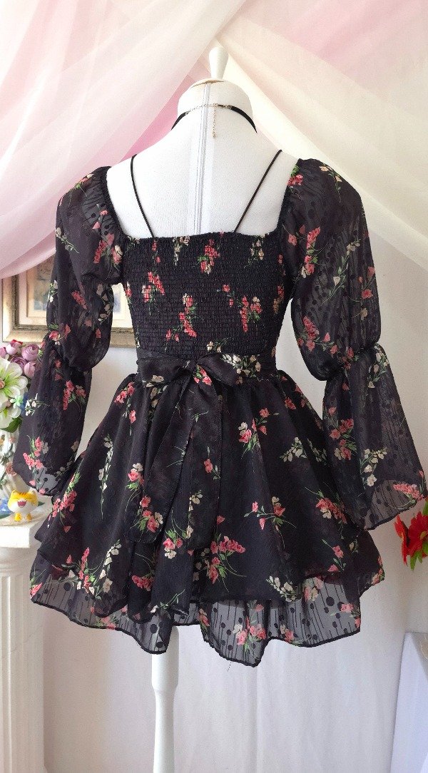 Confeccionado íntegramente en gasa de calidad premium, totalmente estampado en tonos romanticos coquette!