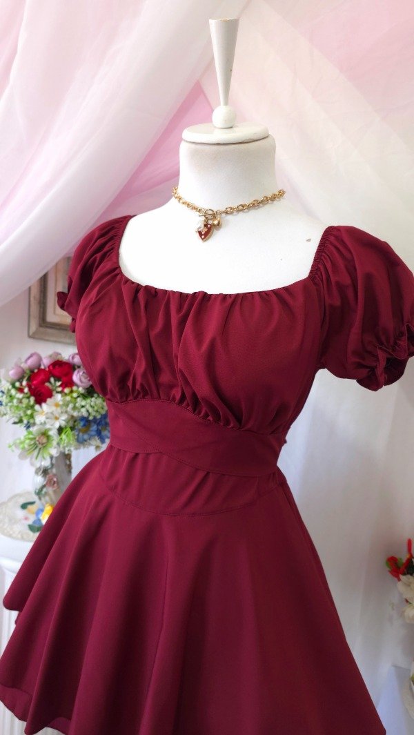 Posee busto totalmente armado con escote abullonado.